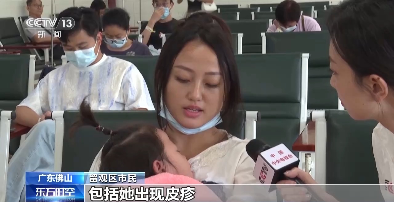 留观区市民:一直在关注基孔肯雅热,所以看到小孩发烧,出现皮疹,而且后背痛,跟报道的所有症状差不多一样,我就赶紧带他过来了。