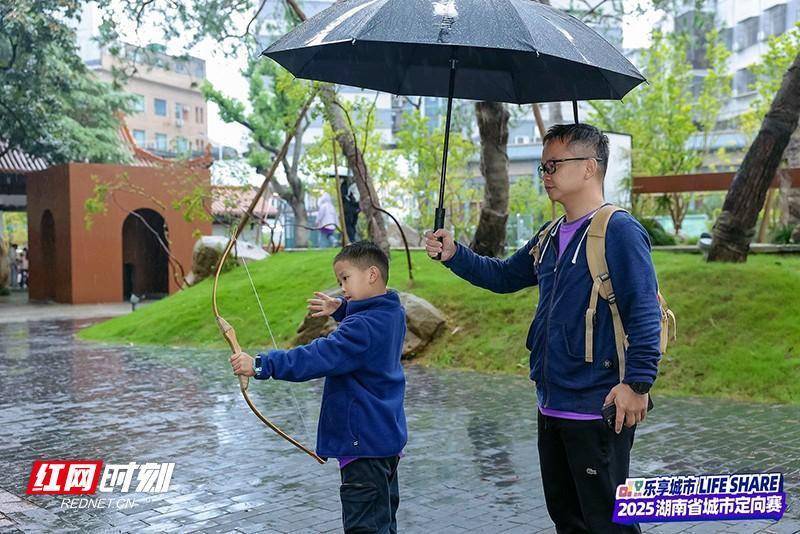 参赛选手在寻找目标的过程中与机器狗互动。赛事颁奖典礼于当天下午在湖南省体育场举行。成人男子组的前三名分别由曾中乐、旦增索朗、刘俊获得,汤瑞琦、刘惠、张瑞燕分别摘得成人女子组的冠亚季军,亲子组方面,张帆/张艺萱、王静/张瑾瑜、张纯/张思茗分获前三甲。本次赛事全程进行了直播,并化身为一档长达5小时的长沙文旅全景体验节目。解说员深度植入了对岳麓山人文历史、橘子洲头红色记忆、湘绣湘剧非遗魅力以及五一商圈、都正街等潮流街区的详尽介绍。镜头跟随选手穿梭于大街小巷,实时展现了这些文旅资源最真实、最鲜活的状态,激发了线上观众“亲临其境”的旅游意愿。 一对父子在活动中体验射箭项目。本次比赛通过体育竞技的形式,引导人们主动地、深入地、多维度地“走进”城市。通过体育的纽带,人们以全新视角探索城市,感受历史与现代的交融,体验文化与潮流的碰撞,共同乐享充满活力的城市生活。本次赛事不仅赛出了速度与激情,更跑出了文化自信与城市魅力,为湖南“体育+文旅”融合发展提供了“长沙样本”。本次活动由湖南省体育局主办,长沙市雨花区人民政府承办,长沙市雨花区文化旅游体育局协办,体坛传媒集团股份有限公司运营。举报/反馈